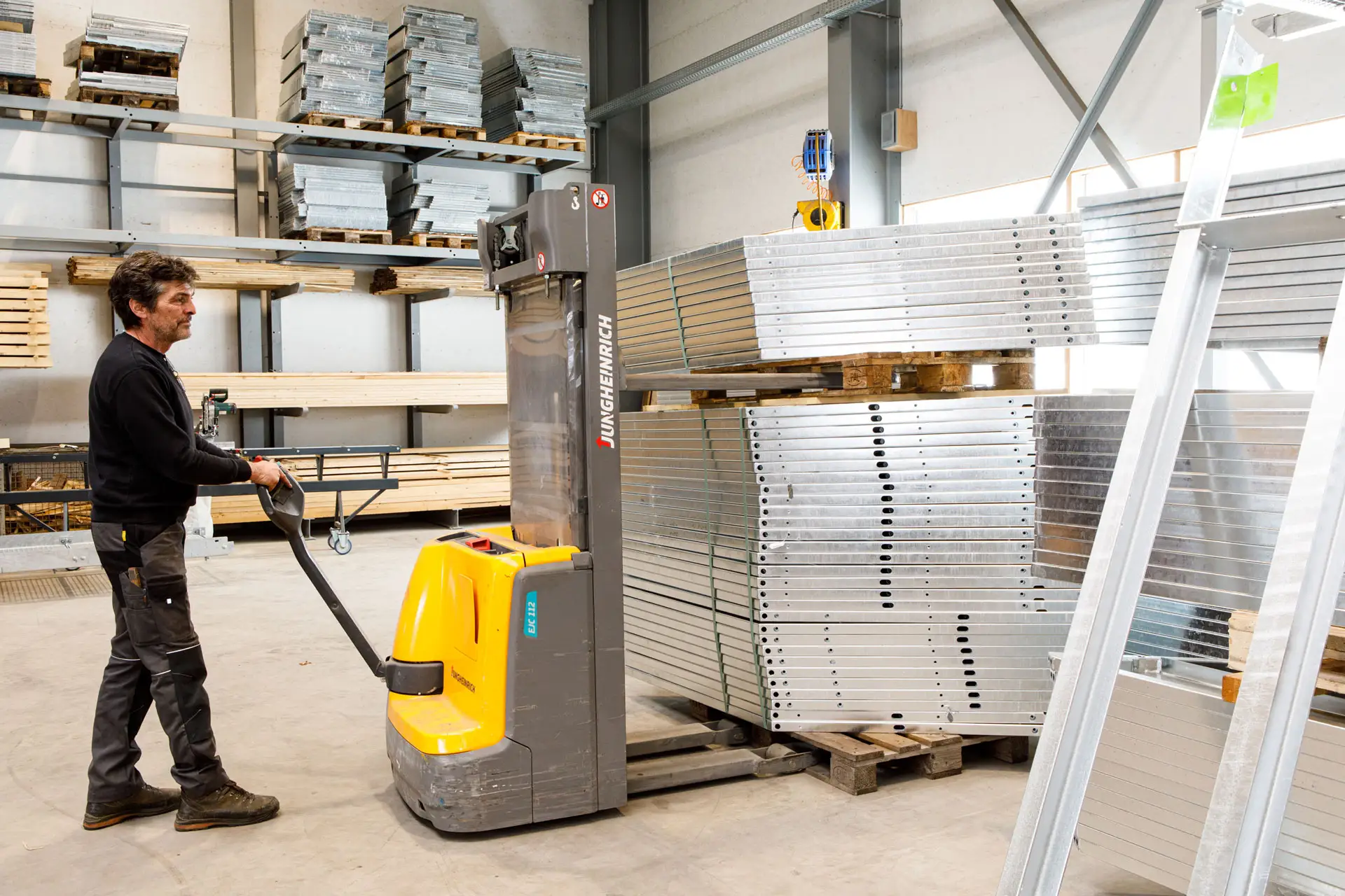 Wir verarbeiten ca. 800 Tonnen Stahl- und Metallteile jährlich. Ca. 400 Tonnen werden dabei als Laser- oder Kantteile zugekauft, der Rest als Träger- oder Stangenware, wovon wir ständig ca. 100 Tonnen lagernd haben. Ca. 600 Tonnen Stahl werden jährlich bei unseren Partnern verzinkt, der Rest wird lackiert, pulverbeschichtet oder bleibt roh.